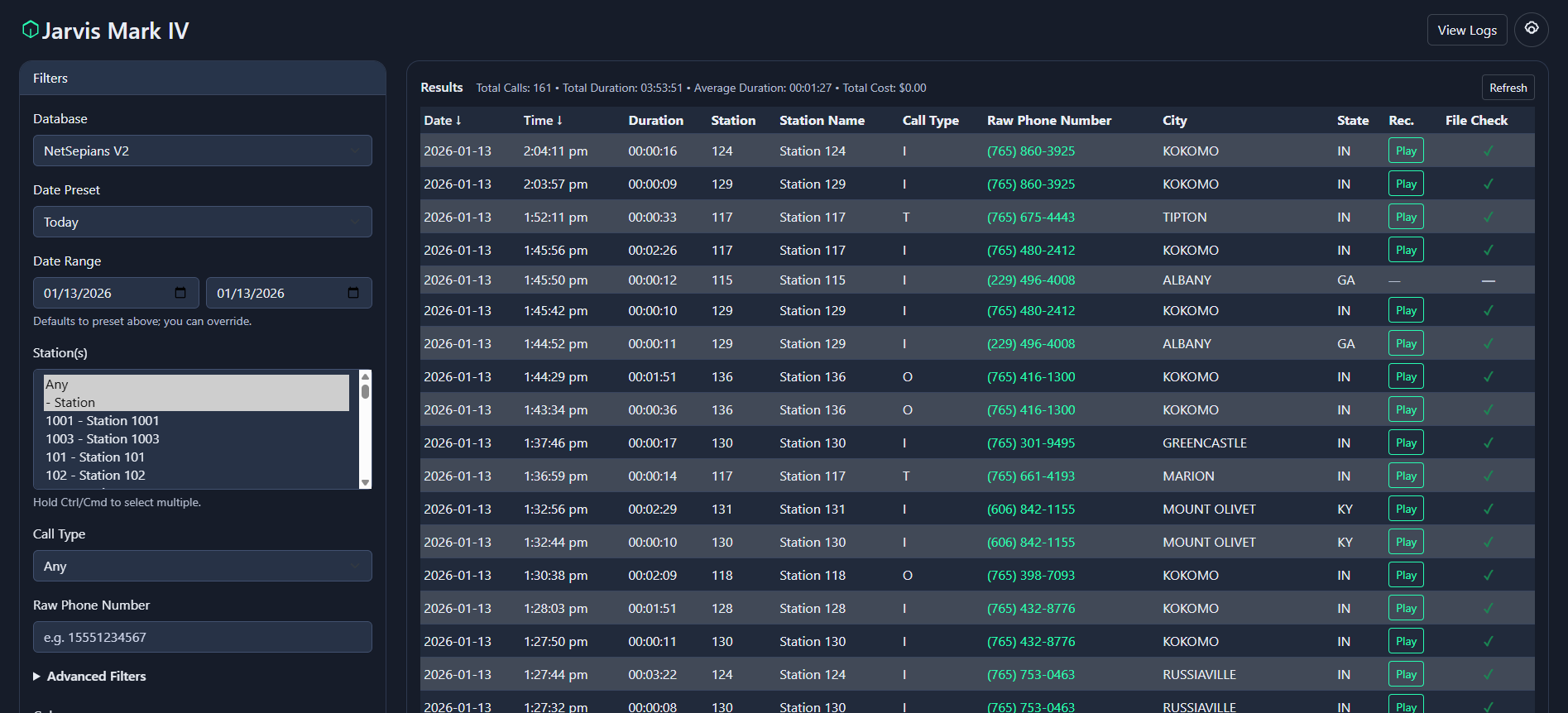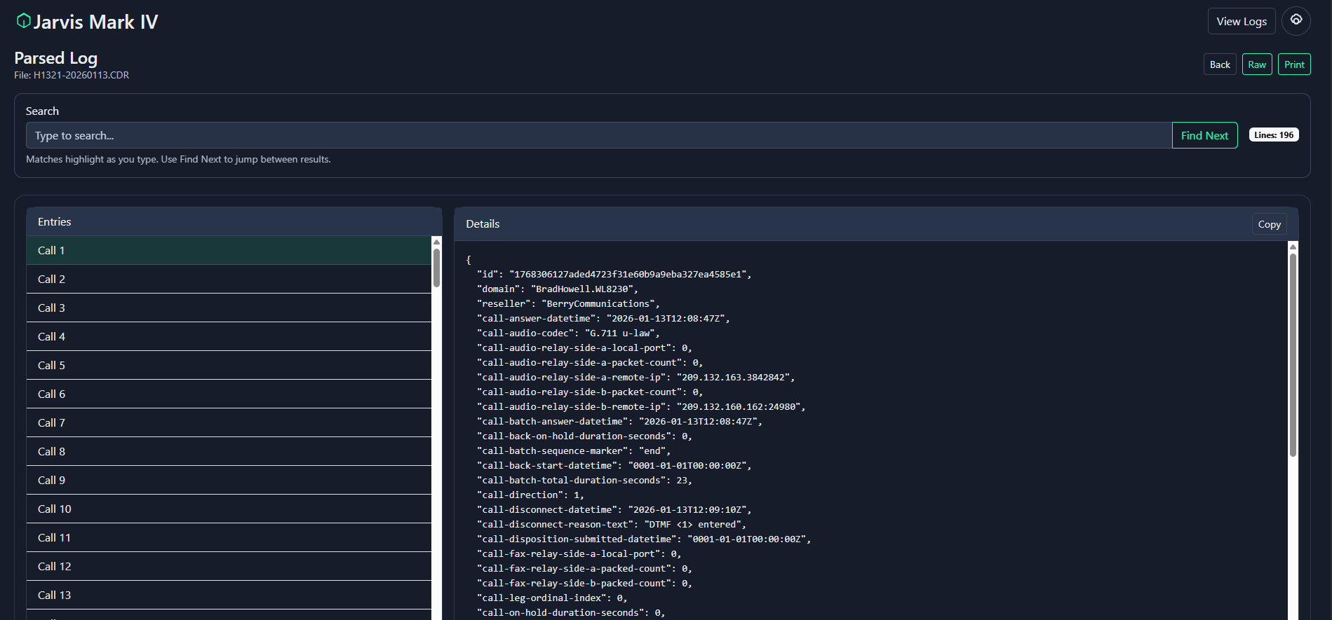 This is a tool I built utilizing ChatGPT Codex model. This tool interfaces with either an access database or SQL Server, it parses call log data and easily helps troubleshoot problems in call data and/or logs.