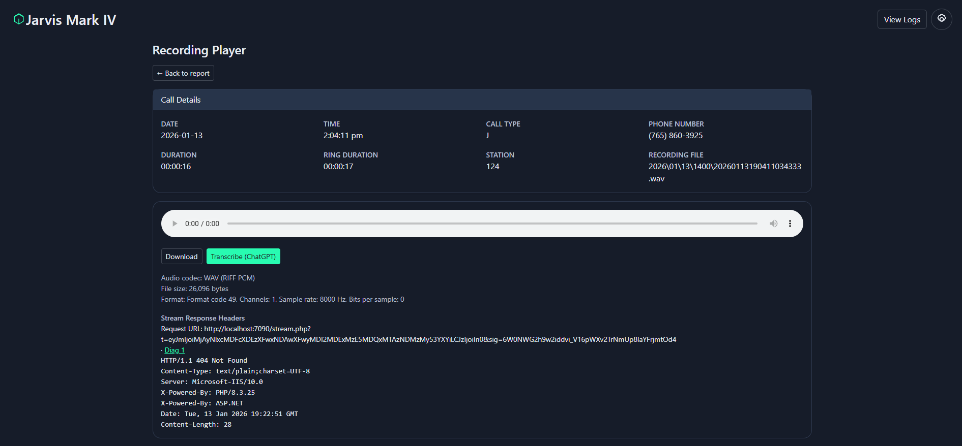I built in a transcription / play function for recorded calls – the app will transcribe and summarize a call as long as its is under 25 min in length.